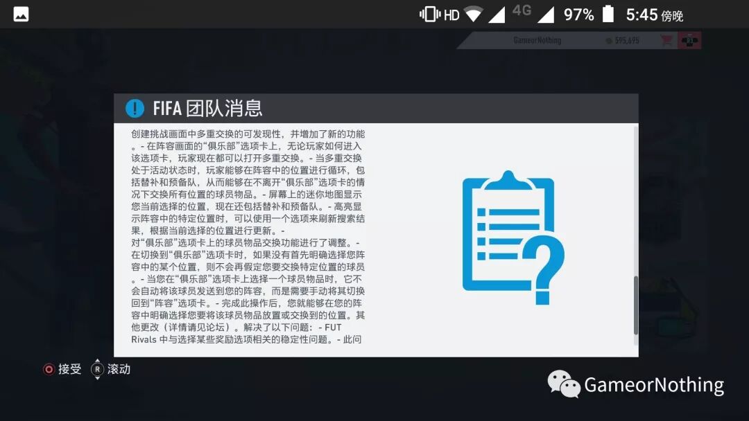 FIFA20FIFA20 UTFIFA20 1.03更新补丁By GameorNothing - 2019年10月3日 昨天傍晚,主机平台开始推送 FIFA20 1.03更新补丁,主要削弱双击传球以及AI自动防守,具体更新内容如下:最后祝大家国庆节愉快,多多赢球!